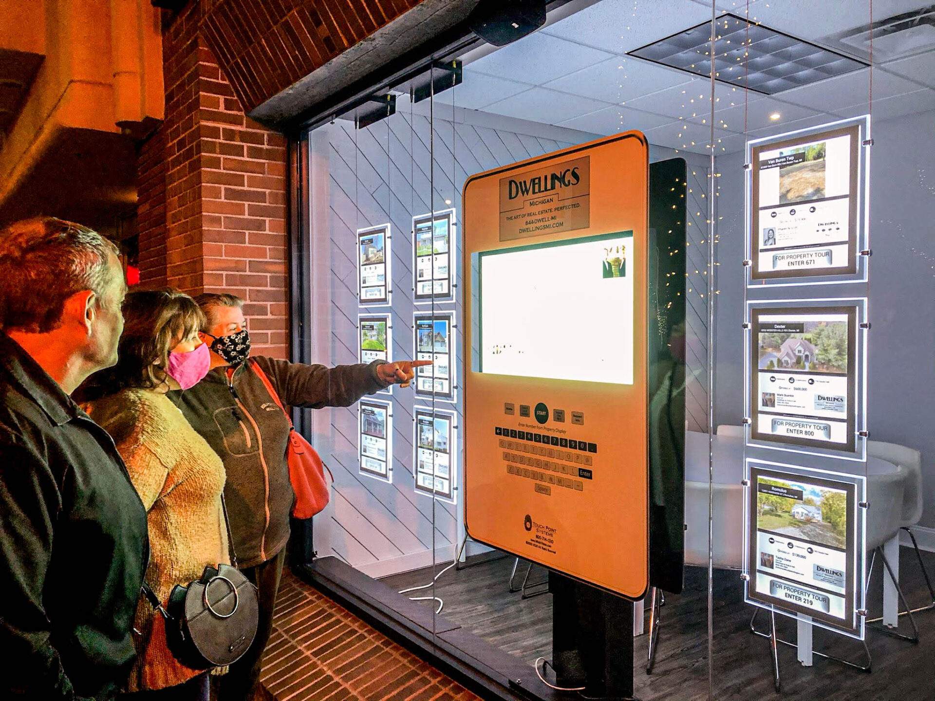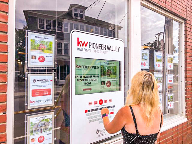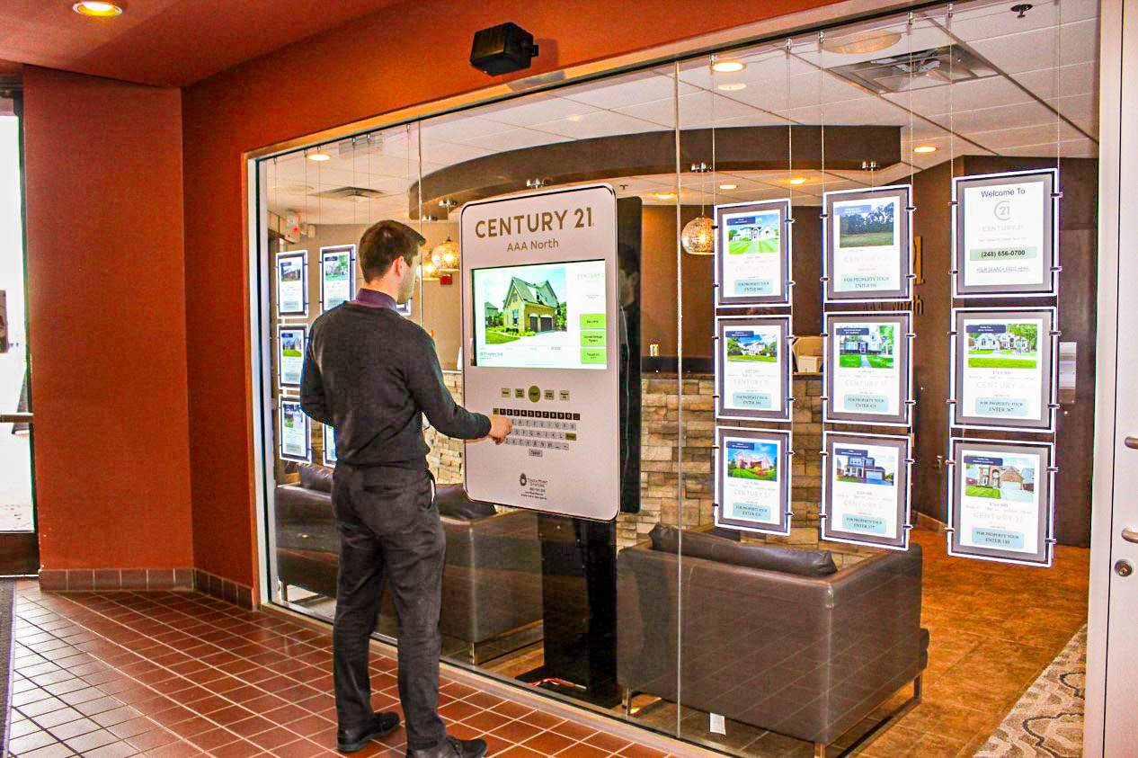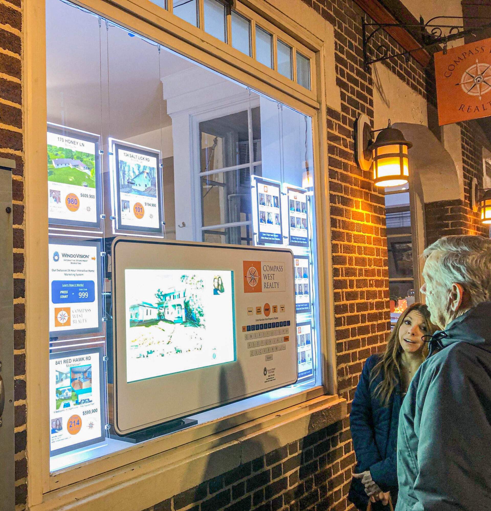 WindoVision features a dual, thru-glass, interactive user interface. Combined with versatile multimedia presentation software, the WindoVision system allows local offices to provide the public on-demand presentations for local listings, along with information on its preferred partners, for local businesses and the surrounding community.
