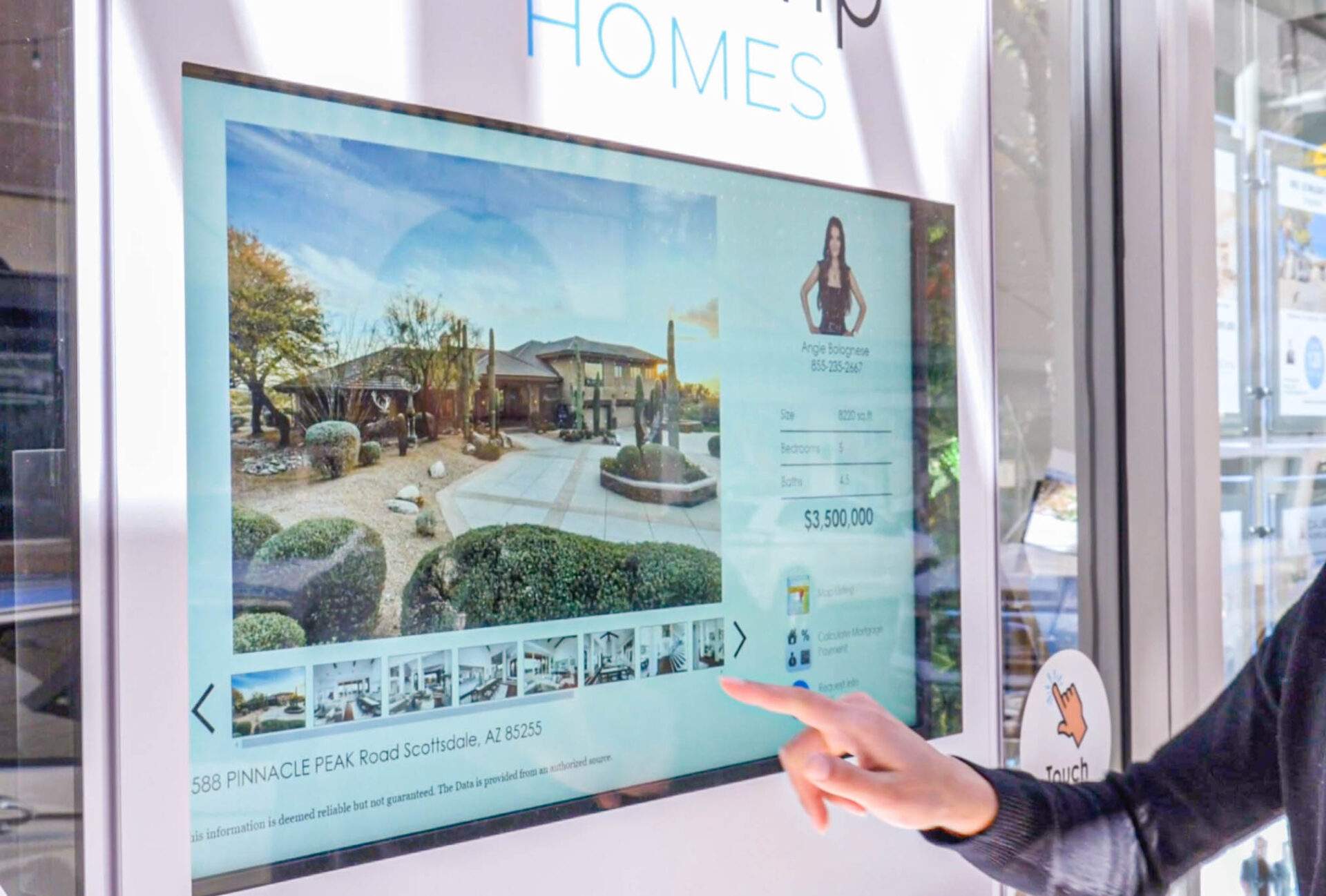 WindoVision also integrates custom QR codes for all of your listings clients can scan on the go. Using our state-of-the-art Dual-Touch technology, WindoVision allows users to access on demand listing info, browse websites, or perform searches right through the storefront window 24 Hours a Day!